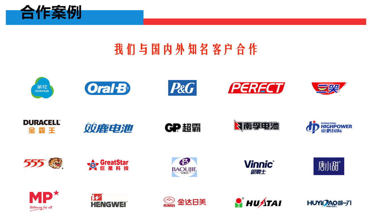 我們專業生產全自動紙塑(吸塑)包裝機,牙刷吸塑包裝機,電池掛卡包裝機,吸塑機等系列產品和多機智能聯動生產線及其相關配套設備。公司集生產、研發、銷售、售后為一體的企業。該產品適用于小五金(堿性電池、紐扣電池、膠水)、文具(卷筆刀、橡皮擦、涂改液、固體膠)、汽摩配(剎車片,雨刮片)、日用品(剃須刀、牙刷、牙線)、化妝品(唇膏,指甲刀,香水)、藥品(紅花油、風油精,)、玩具(小汽車,指尖陀螺,手表)、醫療器械、食品、等行業相關產品的紙塑包裝。